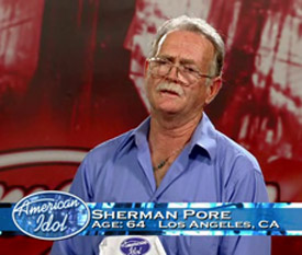 Because the next stage is to bring in someone who stirs up emotions deep within our souls. Last night’s example was a man, the pictured Sherman Pore, who, to lift his dying wife’s spirits, decided to make a petition to allow him to audition for American Idol at the age of 64; tragically, his wife died two days before the audition. His story was heart wrenching, his singing quite good, and in the end you couldn’t help but feel happier knowing that the project he prepared with his wife was able to come to fruition.