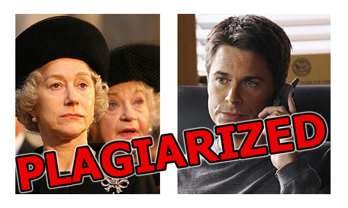 This week, one of the many storylines revolved around a helicopter crash which claimed the life of a young speechwriter who Senator McAllister (Rob Lowe) had been hard on. Kitty (Calista Flockhart) was very emotionally distraught over this, considering that she had been the one who decided that Steven would be in the chopper instead of her and the Senator. This is the real plot of things, but in the process there was an exchange that was quite literally ripped out of The Queen.