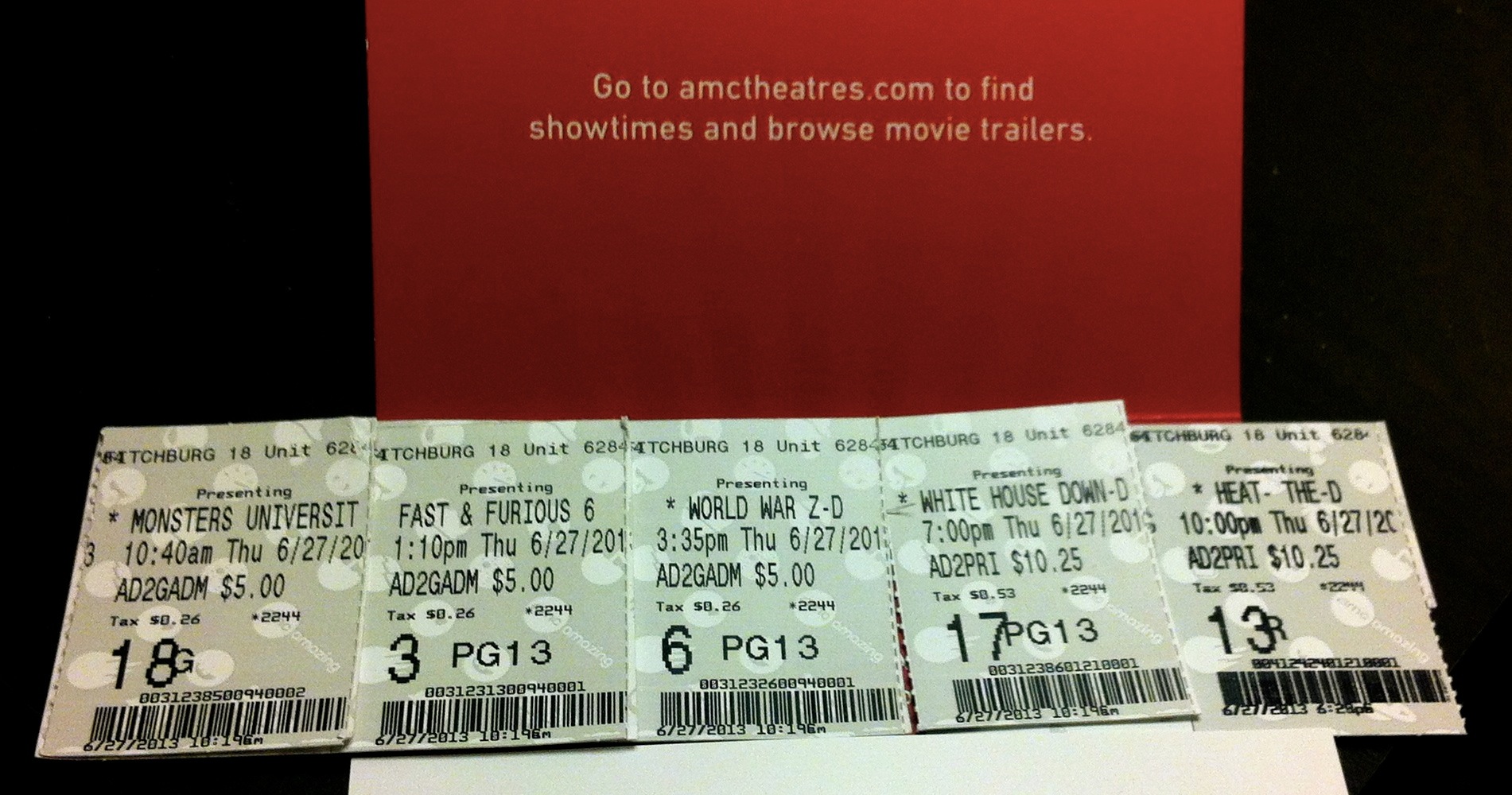 My particular moviegoing mindset is also particularly tuned to marathons. I’m not someone who has incredibly strong responses to movies: I like seeing movies, and I like discussing movies, but you’ll rarely see me take a hard stance on whether I liked or disliked a particular film. This is not to say that I’m not critical of films (I can’t shut that off), but rather that I’m more likely to treat their consumption as a sort of cultural participation rather than evaluation. Seeing five movies in one day is the natural progression of losing an hour watching trailers on Apple.com, jumping from genre to genre in order to get a big-picture view of the cinematic landscape.
