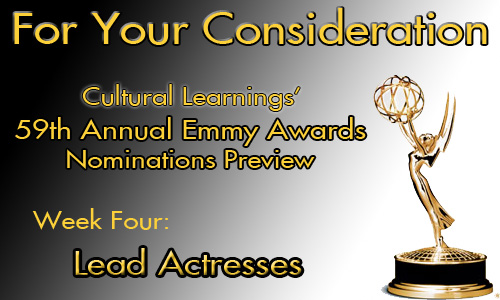 [In Week Four of Cultural Learnings’ 59th Annual Emmy Awards Nominations Preview, we’re looking at possible contenders for the Lead Actress awards in both drama and comedy. Today, we present our fourth set of candidates. For complete listings for all Supporting and Lead Actor candidates from the past four weeks, check out our For Your Consideration index]
